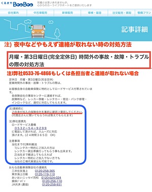 月曜・第3日曜日(完全定休日) 時間外の事故・故障・トラブルの際の対処方法